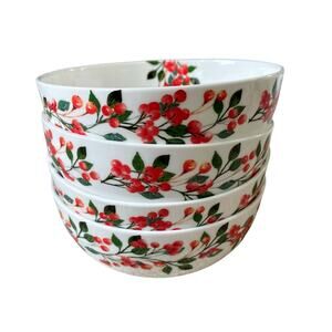 These Cardinal Leaves 6in All Purpose Bowl Set brings a touch of seasonal elegance to your holiday table setting. Beautifully adorned with sprigs of holly and berry branches on which are perched regal red cardinal birds.