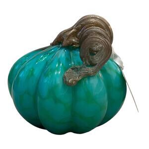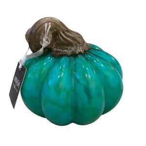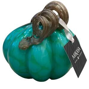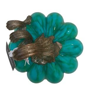 MIKASA Hand Blown Art Glass Pumpkin Aqua Blue & Green Spotted Designer Decor New