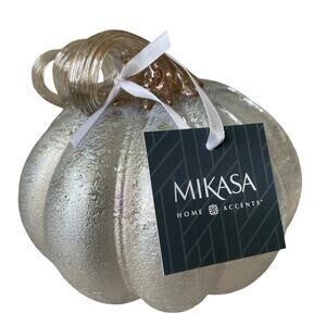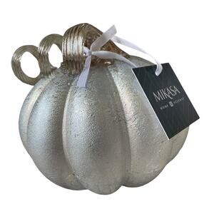 MIKASA Hand Blown Art Glass Pumpkin Metallic Silver Designer Fall Decor New
