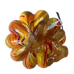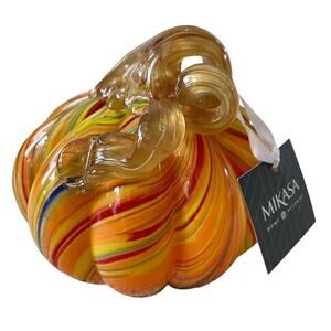 MIKASA Hand Blown Art Glass Pumpkin Orange Multi Swirl Designer Fall Decor New