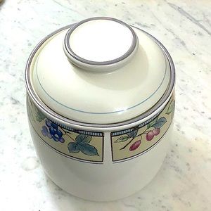MIKASA INTAGLIO GARDEN HARVEST CANISTER & LID CAC29 PEARS GRAPES 8 1/2 IN