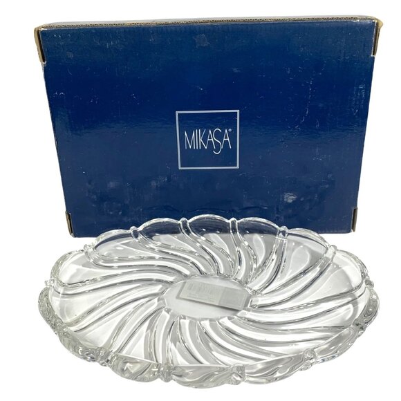 MIKASA Peppermint Clear Glass Sweet Candy Dish 9.5" Oval Germany Made 12336/0
