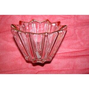 Shaped Candle Holder 3, Clear Glass. Metallic Sheen around the rim. Not ever used. In very good condition. Not in original box.