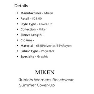 MIKEN Juniors Womens Size XS White Pineapple Print Beachwear Summer Cover-Up NWT