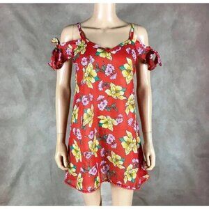MIKEN SWIM Sheer Red Floral Mini Dress Beach Cover-Up