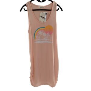 A cute after beach look from Miken, featured with adjustable shirring at the hems for a customizable finish. Hits at thighs. Pullover styling; Scoop neckline. Graphic print at front; adjustable shirring at side hems. Machine washable.