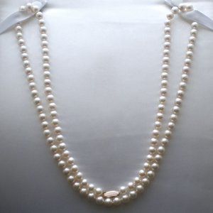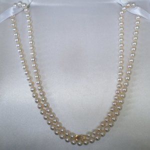 MIKIMOTO BLUE LAGOON 30" 6.5-7MM Akoya Pearl 14K Yellow Gold Clasp Necklace