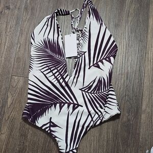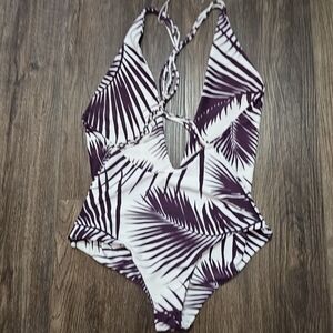 MIKOH Africa One Piece in Botanical Wine Palm Print, Deep V Neck Sz M,Vacation
