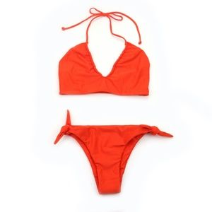 This is a brand new, unworn without tags purchased directly from Mikoh. Love this combo! This top is mean to stay on so great for swim and surf. You can wear like a halter or criss cross the front. Like most designer swim, this brand runs small so please check their size chart and read reviews.