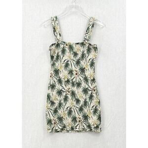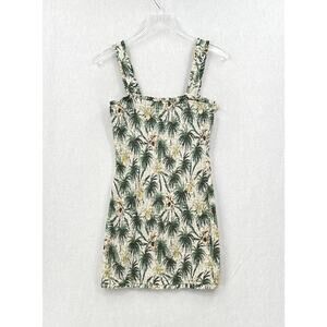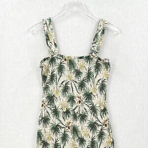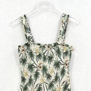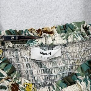 MIKOH Magnolia Mini Dress Womens Large Cream Green Smocked Shirred Palm Tree
