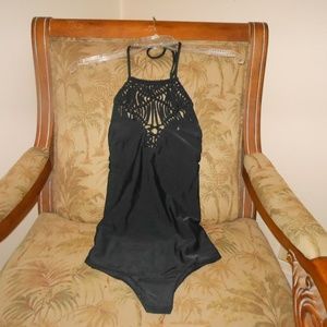 *** ********NEW NO TAGS*****LINER INTACT****NEW WITH FLAW AT TOP---Pic#9*****GORGEOUS Swimsuit with Crochet High Neck--BACKLESS--Swimsuit is LINED ****NO TRADES****NO HALF OFF****OR LESS***OFFERS