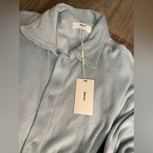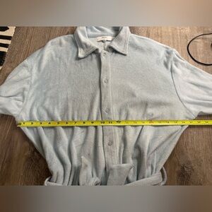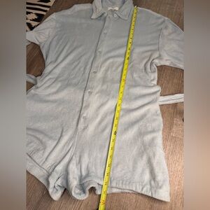 Size M Color Seabreeze light blue New with tags 100% cotton Made in Indonesia Machine wash Front button closure with waist tie Collar neck and button cuffs Midweight terry cloth fabric MIKOH Santos Romper Seabreeze Light Blue Terry Cloth Long Sleeve 2/M NWT $236