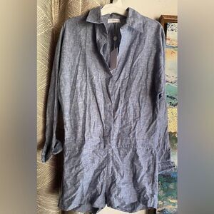 MIKOH Womens Romper Sz 1/S Light Blue Linen Button Up Beach Vacation Cover Up