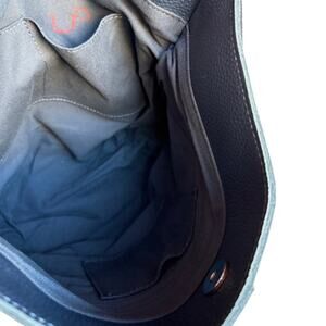 M.I.L.A. crossbody bag is NWT and in great condition except for a red mark that says "LP" inside one of the interior pockets - see photo. Otherwise, no blemishes, but there is creasing from storage that you may notice. This is a truly beautiful bag made with butter soft pebbled navy leather that has a subtle purple undertone. It's a square shaped bucket bag that's still available on the M.I.L.A. website and epitomizes minimalist luxury style. The strap is adjustable and has a swinging tassel. Measures app'x: 13 x 11 x 5 (inches)