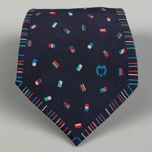 MILA SCHON Black Multi-Color Flags Silk Tie