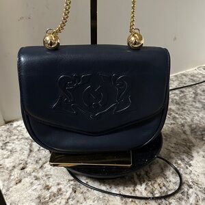 MILA SCHON Chic Navy Leather Crossbody Bag with Gold Chain PRE-OWNED.