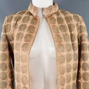 MILA SCHON Size 6 Beige Tan Polyester Circles Beaded Coat