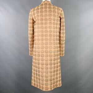 Vintage MILA SCHON coat in a beige and tan polyester featuring a circles pattern, beaded details, and open front. Made in Italy.