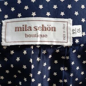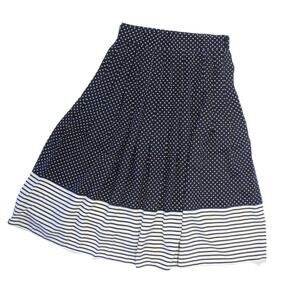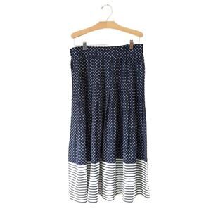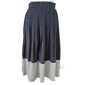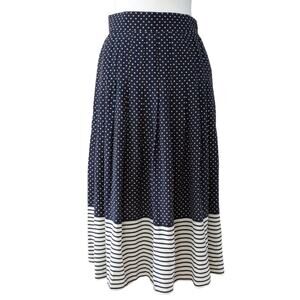 Rare MILA SCHÖN Boutique Pleated Midi Skirt in a Navy & off-white star print with contrasting striped hem.