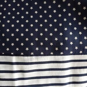 MILA SCHON Vintage Silk Pleated Midi A-line Skirt Navy Star Print