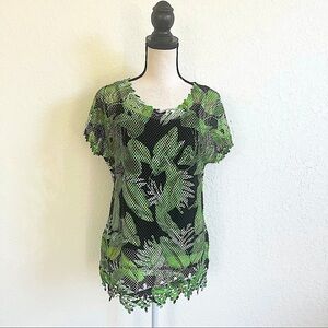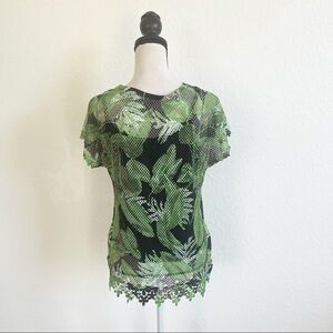 MILANO Green Tropical Floral Cut Out Lace Overlay Short Sleeve Top Tank Top Under in a Size Small