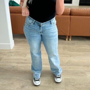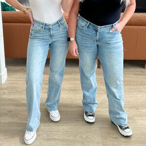 Get ready to redefine your denim game with Mildred High Rise V Front Waistband Straight Jeans from Judy Blue! The V-front waistband tapers down offering a flattering fit while the 4-way stretch and raw hem add style and comfort. Plus, the light wash and straight leg make these jeans a wardrobe must-have. If you're not a tall person don't let the generous 33" inseam worry you. The beauty of the raw hem allows them to be cut off for your length.