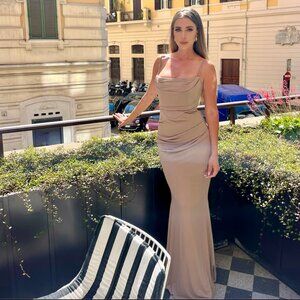 MILENA ALMOND JERSEY CORSET MAXI DRESS Size Small