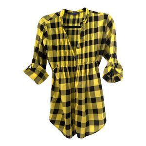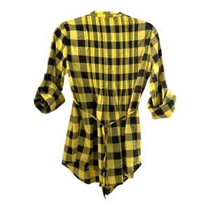 MILEY CYRUS max yellow & black checkered plaid button down cute top size XL