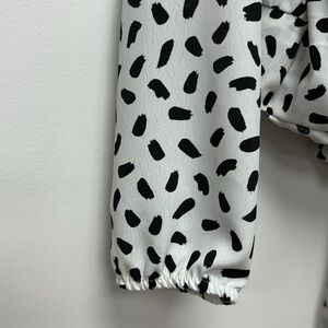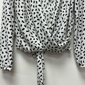 MILEY + MOLLY Blouse for women usable in the office in black and white size M, Miley + Molly Black and White Surplice Long Sleeve Top, It has a detail to tie and make a bow at the back that makes it feminine and modern garment