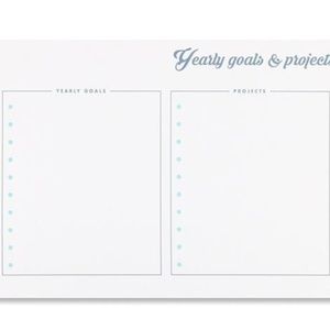 -55 sheets (110 pages) with five different designs including yearly goal, monthly plan, week plan and two different note inner pages.