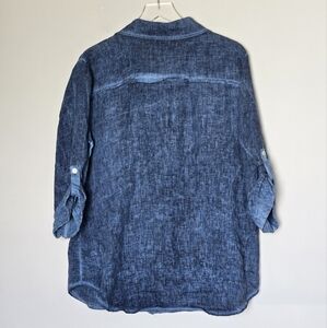 MILIO MILANO 100% Linen Roll Tab Sleeves Lagenlook Boho Blue Button-Up Shirt in wonderful condition. No flaws. Non-smoking, no pet home. No material tag but it's 100% linen.