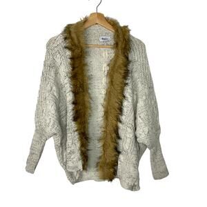 MILITARY HIPPIE Felicity Faux Fur Batwing Cardigan White Brown