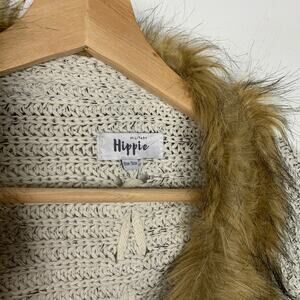 MILITARY HIPPIE Felicity Faux Fur Batwing Cardigan White Brown