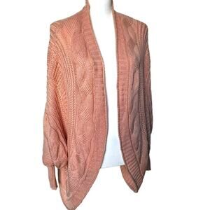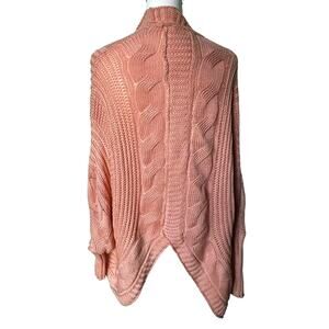 MILITARY HIPPIE OS Pink Peach Cable Knit Open Front Cardigan Batwing Sweater