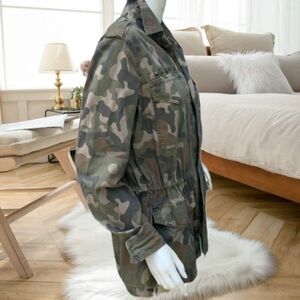 MILITARY UTILITY ARMY CAMO CINCHED DRAWSTRING WAIST STUDDED SMALL JACKET COAT