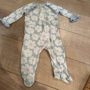 MILKBERRY GREEN AND WHITE RUFFLE ONE PIECE SLEEPER BABY GIRLS 0-3 MONTH