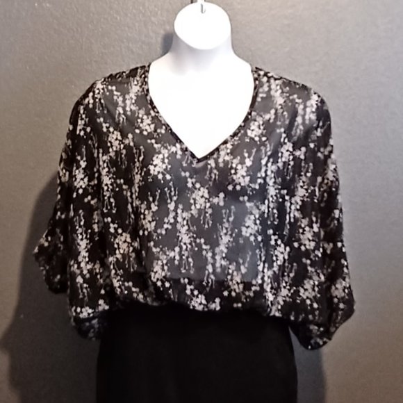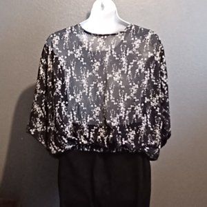 MILKY WAY SHEER BLOUSE BLACK, WHITE, AND PINK SIZE LG NWOT