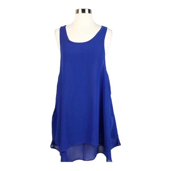MILLAU Chiffon Blue Shift Swing Dress Sheer Layers Scoop Neck Sleeveless Medium