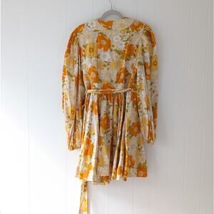 MILLE Nan Long Sleeve Cotton Wrap Mini V-neck Dress in Retro Floral, size XL