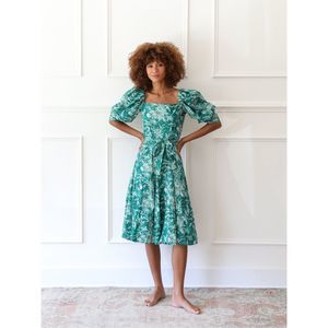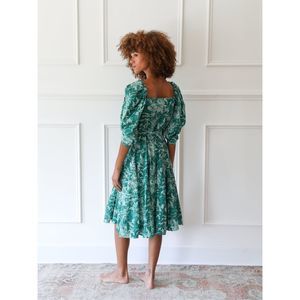 A midi version of our classic Anais silhouette, the Penelope is sure to become a fall favorite. Dress features a wide, square necklace framed by voluminous sleeves which can be worn below the elbow at a ¾ length or pushed just above to create a more relaxed look. Straight through the middle with no belt loops but can be cinched for a form-fitting look with the included, coordinating belt. Mid-calf length with trumpet-style pleated hemline. Penelope pairs perfectly with boots but can be worn in warmer months with sandals. This lovely dress is both easy to wear and makes a statement. Destined to become a classic. Wash separately in cold water and hang to dry.