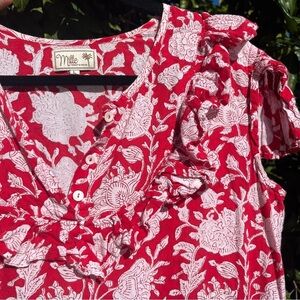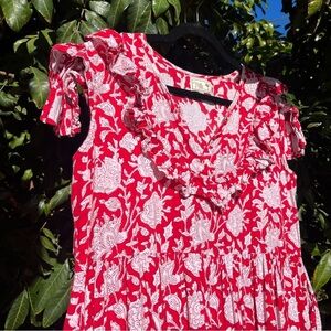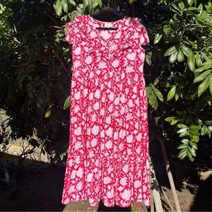 MILLE RESORT pink red floral sleeveless cotton midi dress