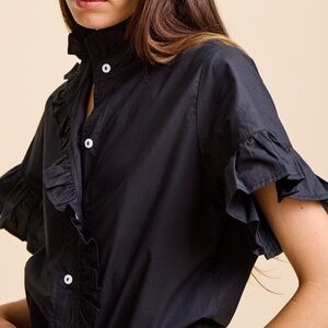 The Vanessa is our new favorite everyday top. With cascading ruffles that frame the face and flattering bell shaped sleeves we've never loved a short sleeve top more.