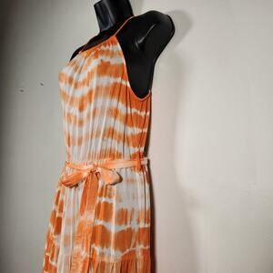 ITEM: MILLENIUM Sundress Maxi Dress Womens Small S Orange White Tie Dye Tiered Beachy