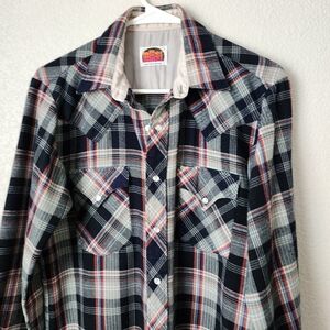 MILLER WESTERN WEAR x VINTAGE 70's pearlized snap button up shirt red blue