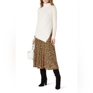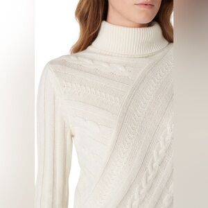 MILLY Asymmetrical Cable Knit Turtleneck Sweater