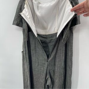 MILLY Black Denim Chambray Ruffle Popover Strapless Open Leg Pant Jumpsuit 6