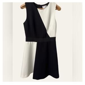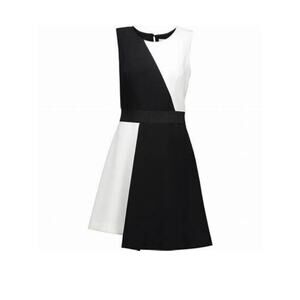 MILLY Black White Asymmetrical Sleeveless Colorblock A-Line Dress Size 8