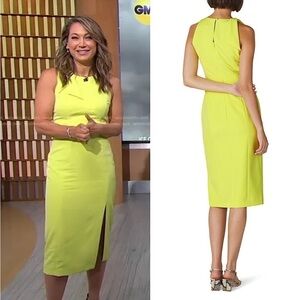 MILLY Chartreuse Neon Cady Sleeveless Tie Strap Leg Slit Sheath Midi Dress 10