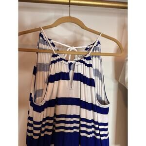 MILLY Design Nation Dress Blue White Stripe Halter Maxi Tie Back Size Medium