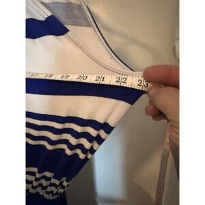 The MILLY Design Nation Dress in Blue and White Stripe is a stylish and versatile maxi dress perfect for various occasions such as travel, parties, casual outings, or business functions. This sleeveless halter dress features a tie back closure for adjustable comfort and is made from a comfortable blend of spandex and cotton. The long dress length and woven fabric make it suitable for warm summer and spring days, while its designer brand and adjustable features add a touch of sophistication to any wardrobe. Machine washable for easy care, this dress is a must-have for any fashion-forward woman.